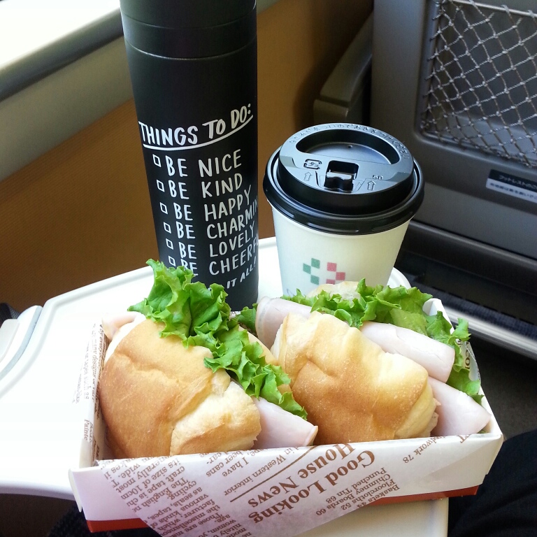 途中で食べる時間が無いかもと思い、弁当持参で車内で食べる。