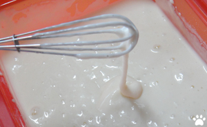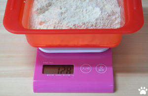 そこにホットケーキミックスより少し少なめの重量のお水を足して混ぜる。
