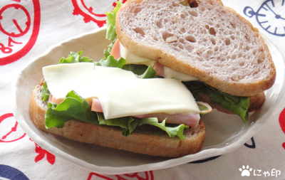 グリーンリーフ、ハム、チーズ、マヨネーズのシンプルなサンド。