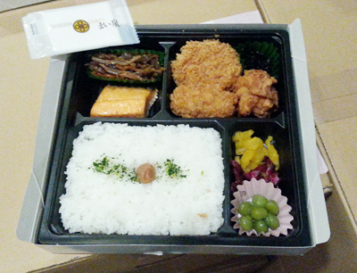 中は赤い容器で3つに仕切り。おうちで使っても楽しい。