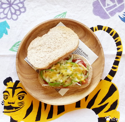 FLY BAGにお弁当箱を入れて。内側はアルミシートが貼ってあるので保冷可。