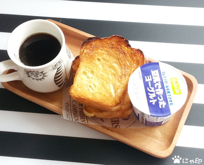 昨日のお昼に食べたパンの残りをトーストに。