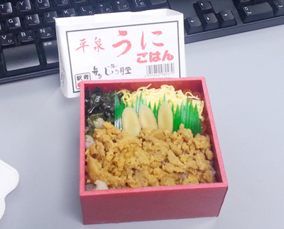 FLY BAGにお弁当箱を入れて。内側はアルミシートが貼ってあるので保冷可。