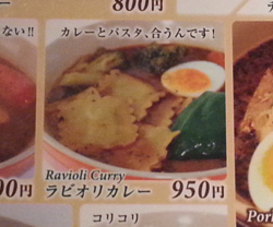 カレーとパスタの組み合わせ「ラビオリカレー」を注文します。