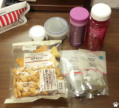 FLY BAGにお弁当箱を入れて。内側はアルミシートが貼ってあるので保冷可。