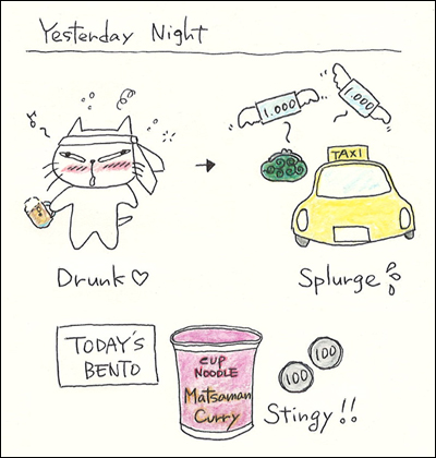 昨日タクシーに乗るというぜいたくをしてしまった罰じゃ。