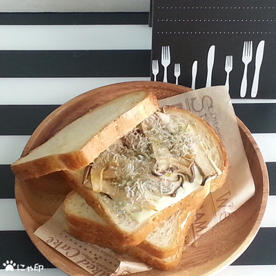 エリンギ、ちりめんじゃこ、スライスチーズ、マヨネーズ、オリーブオイル。