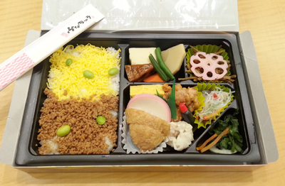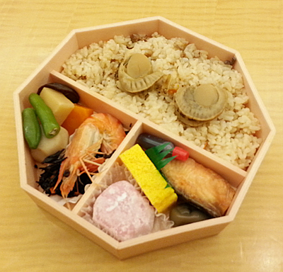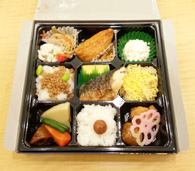 中は赤い容器で3つに仕切り。おうちで使っても楽しい。