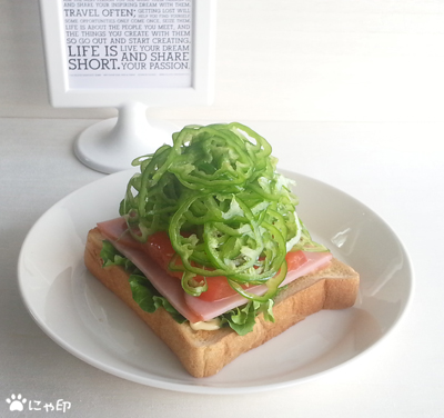 オリーブオイルで和えた生のピーマンをたっぷり。