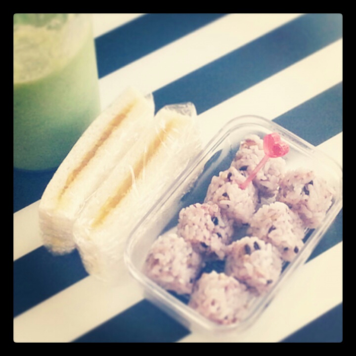 移動中にミニおにぎり食べた。